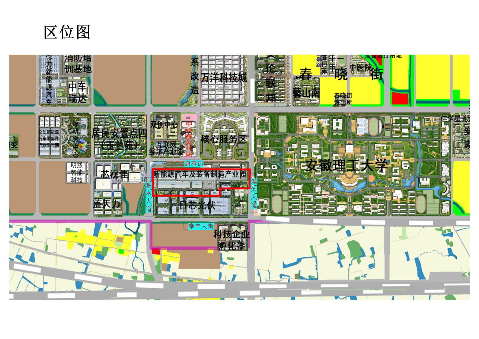 现将淮南高新区新能源汽车及装备制造产业园项目规划设计调整方案予以批前公示,征求市民意见。