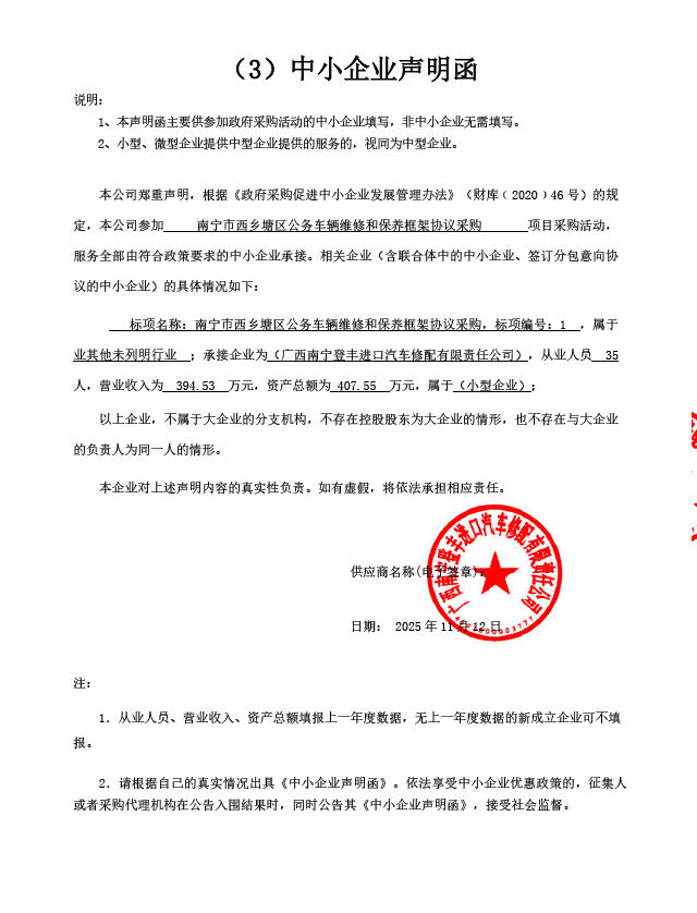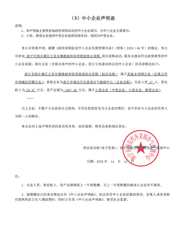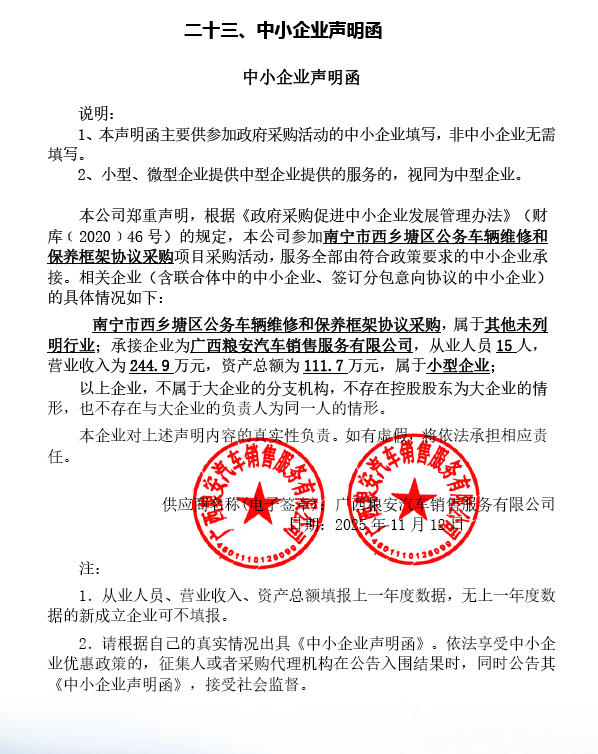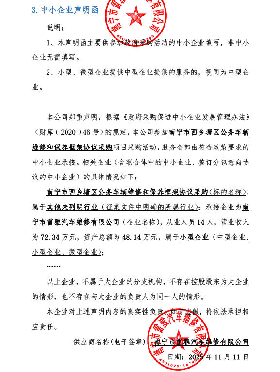 1、项目名称:南宁市西乡塘区公务车辆维修和保养框架协议采购