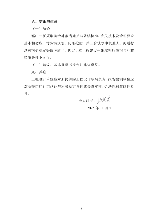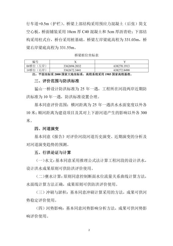 一、同意武胜县X092-X105万燕路猛裕路(G350至猛山段)幸福美丽乡村路改建工程猛山一桥行洪论证与河势稳定评价报告的洪水影响评价结论
