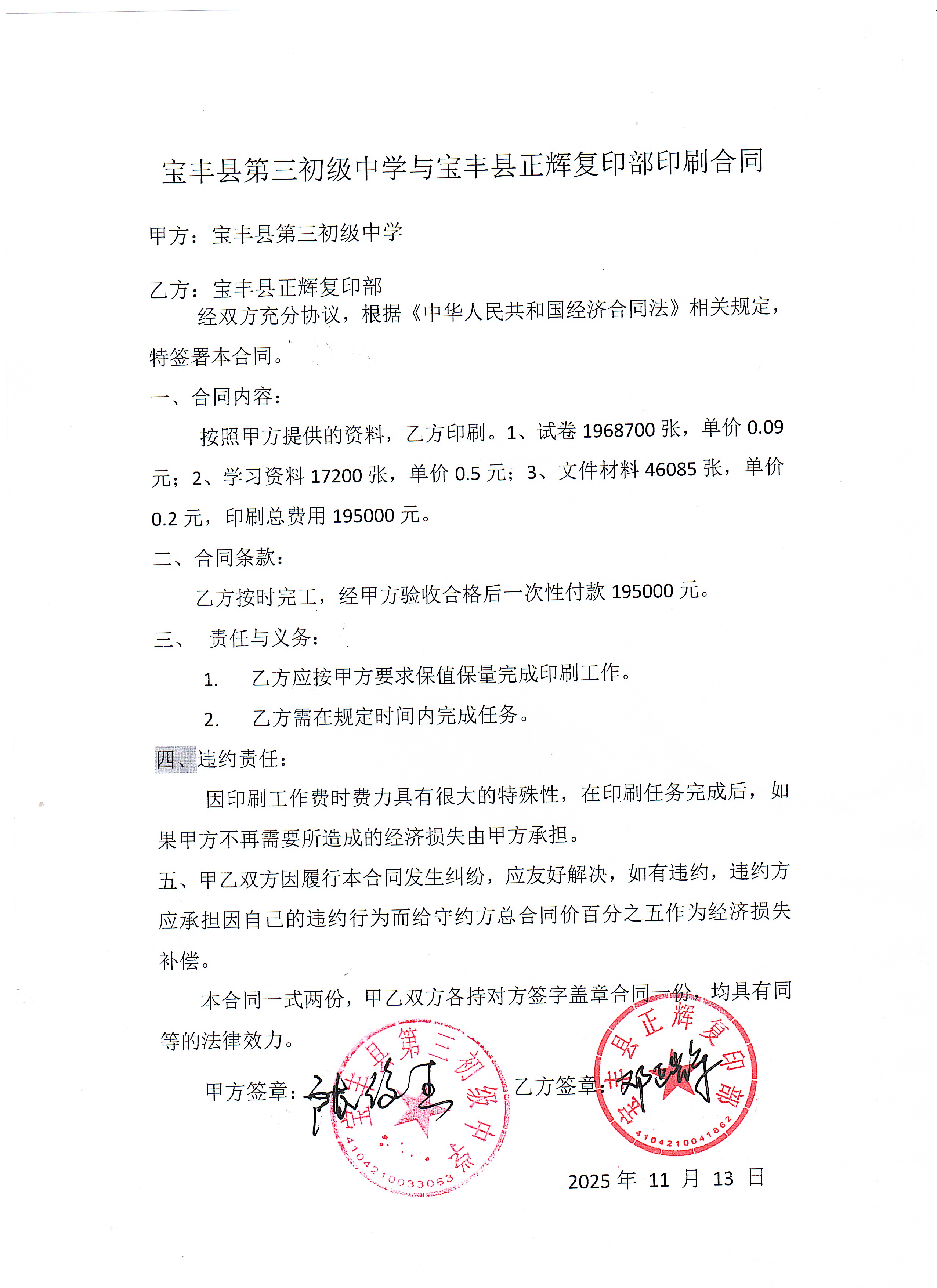 | 1 | 其他印刷服务(集采品目) | 印刷服务 | 学生印刷练习卷 | 2025.11.25 | 依据合同,验收合格 |