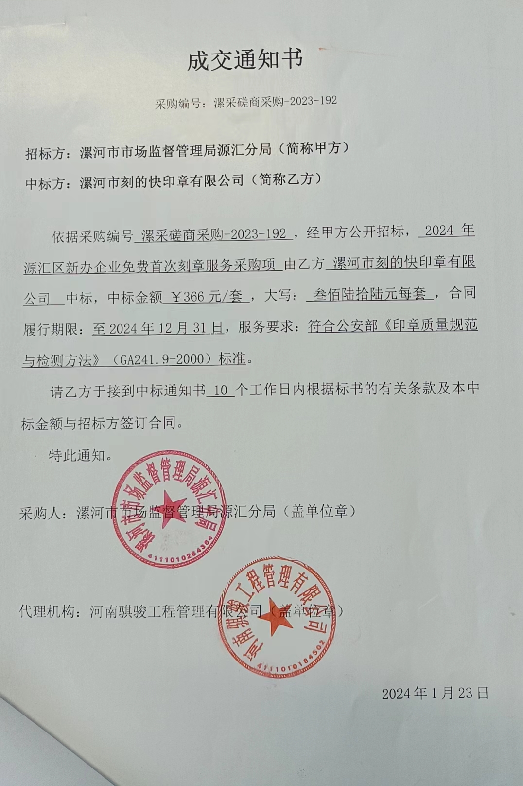| 1 | 其他服务 | 刻章服务 | ******管理局源汇分局要求为辖区符合要求的新开办企业提供免费刻制公章和邮寄业务 | 1年 | 合格 |