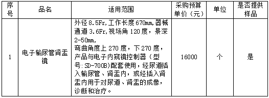 1、项目名称:******医院电子输尿管肾盂镜采购项目