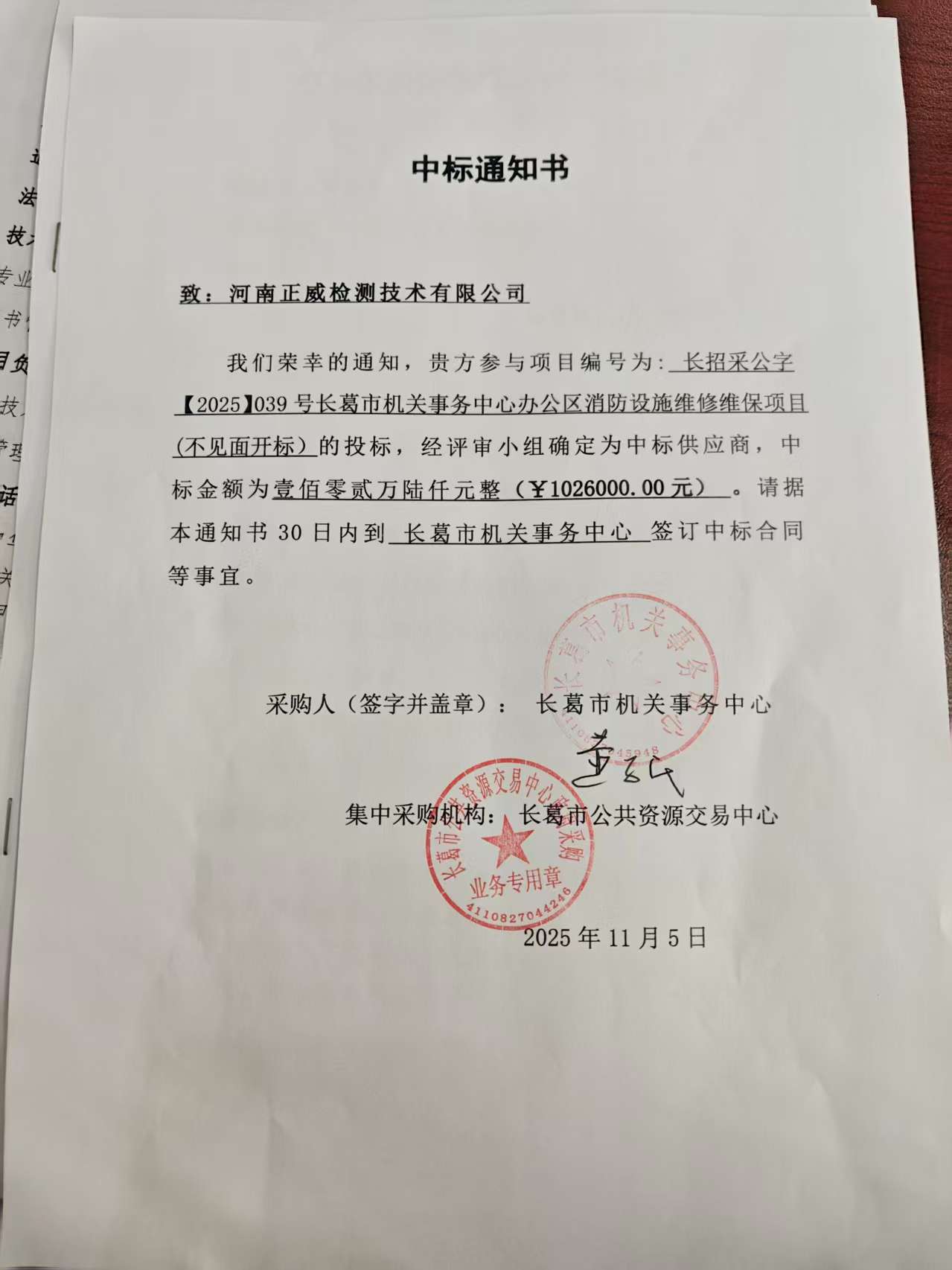长葛市机关事务中心办公区消防设施维修维保项目-合同公告